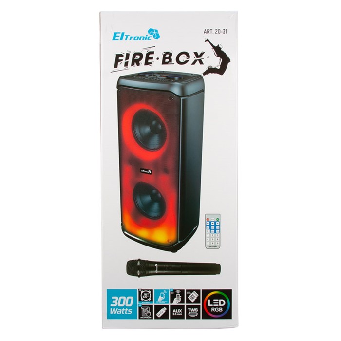 Портативная караоке система ELTRONIC FIRE BOX 300 (20-31), 30 Вт, TWS, BT, подсв., черная — Характеристики
