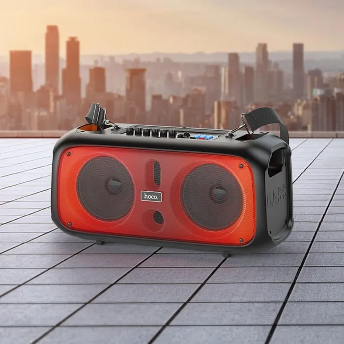 Портативная беспроводная колонка HOCO BS54 сочетает в себе функции блютуз-колонки, музыкального центра и караоке-системы.