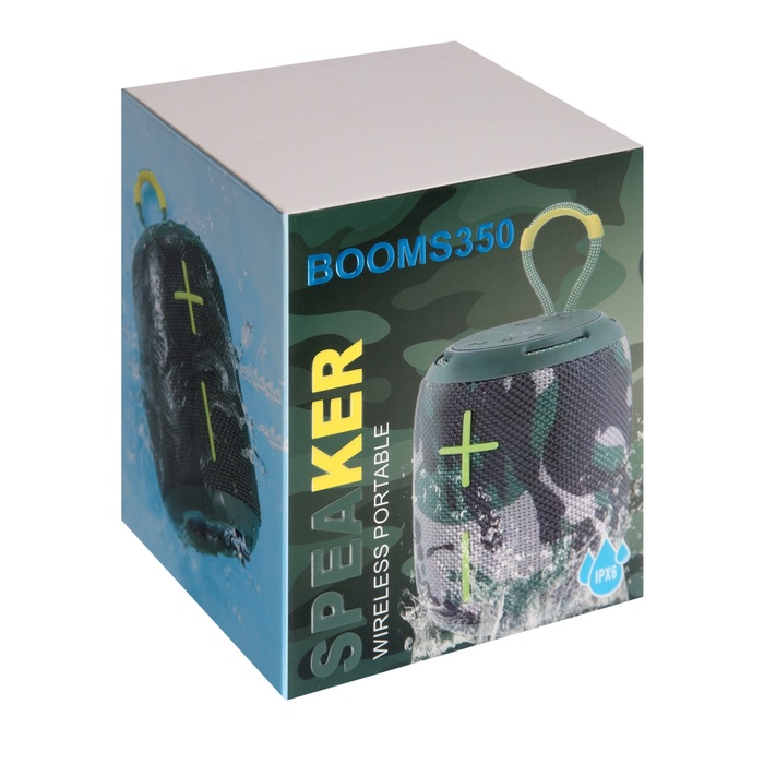 Портативная колонка Booms350 — это стильный и мощный аксессуар, который дополнит вашу активную жизнь и сделает каждый момент ярким и незабываемым. Наслаждайтесь музыкой в любых условиях с этим надёжным и эффектным устройством.