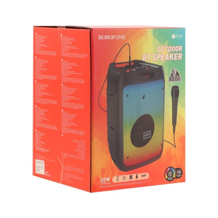 Портативная колонка Borofone BP10, 3600 мАч,BT5.0,20 Вт,TWS,TF card,USB,AUX,FM-радио, чёрная — Характеристики