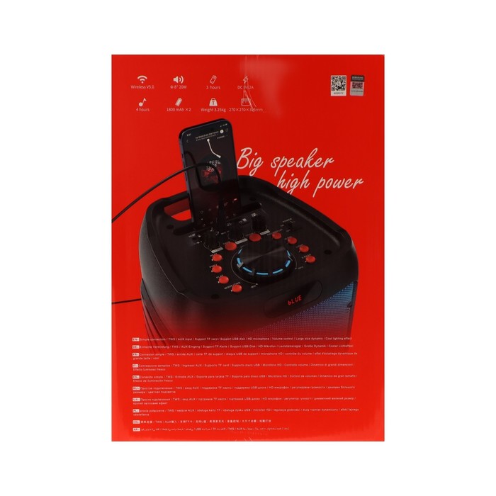 - 8-дюймовый динамик. Выдает чистый звук с мощным басом;