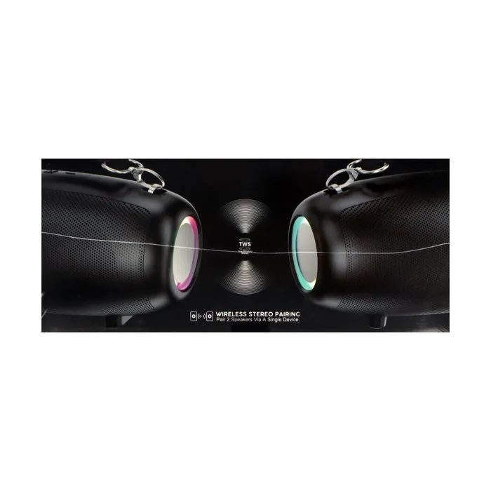 Особенности колонки включают регулируемую громкость и подсветку, которая создаст атмосферу на вечеринке или в любой другой ситуации. Наслаждайтесь качественным стереозвуком, который идеально передает все детали мелодий, а благодаря компактному размеру и стильному чёрному корпусу, колонка легко впишется в любой интерьер или станет удобным аксессуаром для путешествий.