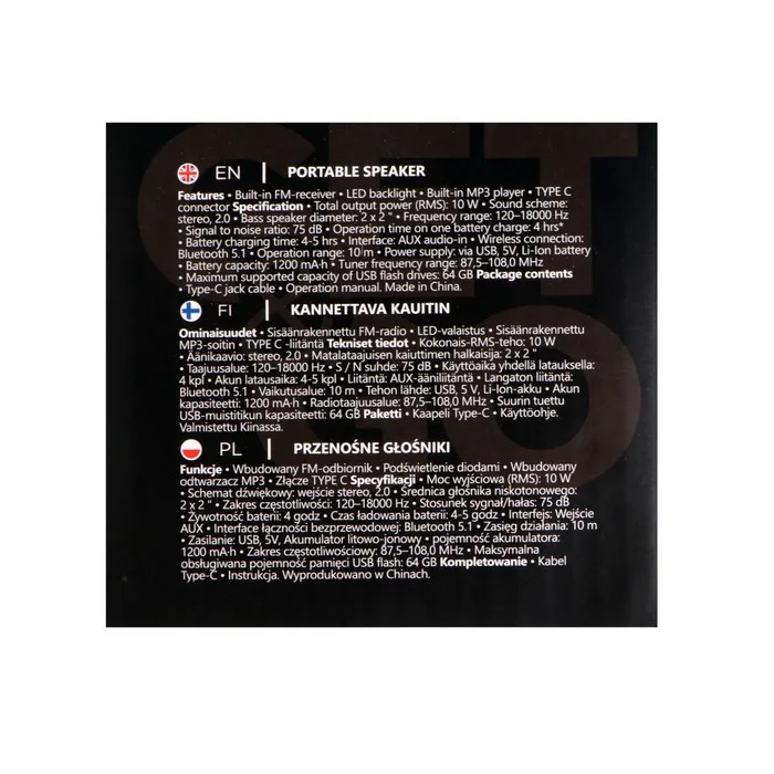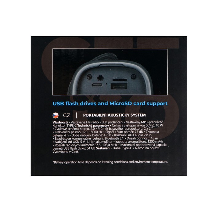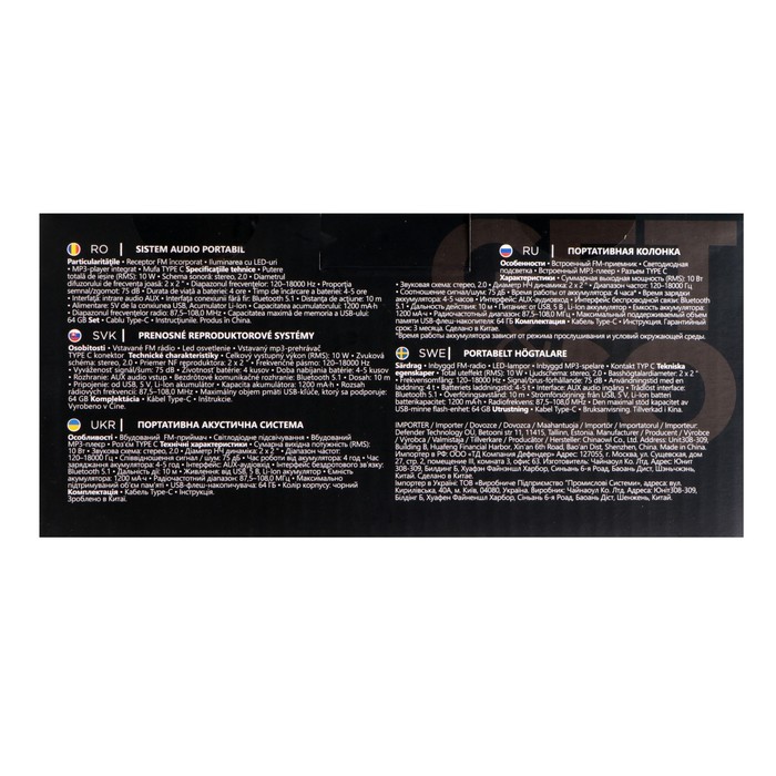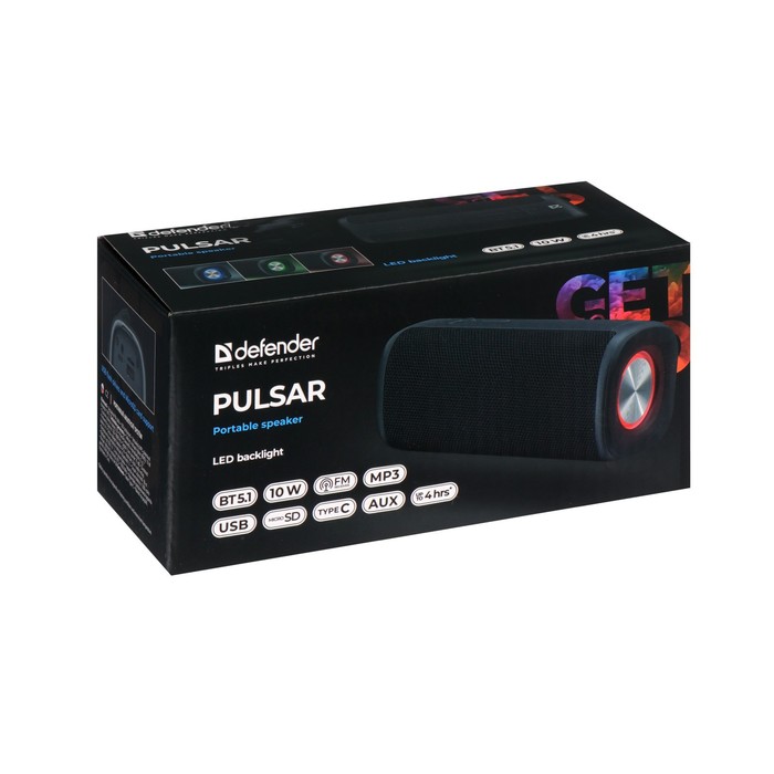 Портативная колонка Defender Pulsar, 10Вт, 1200 мАч, BT,FM, USB, microSD,Type-C, подсветка — Характеристики