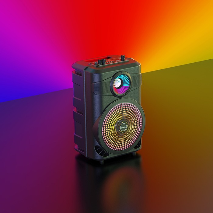 Функция подключения микрофона превращает колонку в удобную караоке-систему, позволяя петь любимые песни в кругу друзей. Поддержка Bluetooth 5.0 обеспечивает стабильное беспроводное соединение с мобильными устройствами, а дополнительные входы (microSD, USB, AUX) расширяют возможности воспроизведения. Встроенное FM-радио добавляет разнообразия в использование, а лаконичный черный дизайн делает устройство стильным и универсальным.