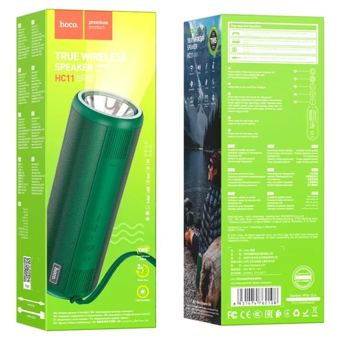 Портативная колонка Hoco HC11, 10 Вт, ВТ 5.0, FM, AUX, фонарь, 1200 мАч, зелёная — Характеристики