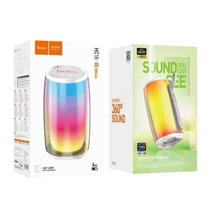 Портативная колонка Hoco HC18, 10 Вт, BT 5.1, FM, AUX, RGB-подсветка, 2000 мАч, белая — Характеристики