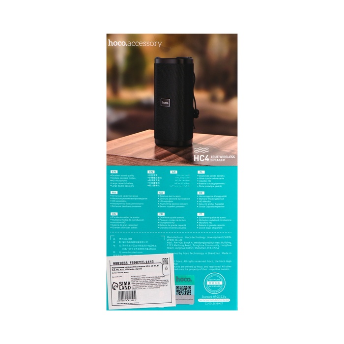 Портативная колонка Hoco HC4, 10 Вт, ВТ 5.0, FM, AUX, 1500 мАч, чёрная — Характеристики