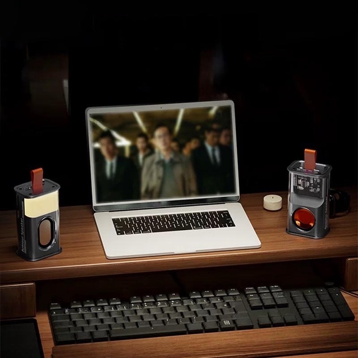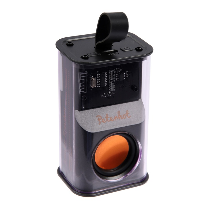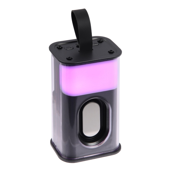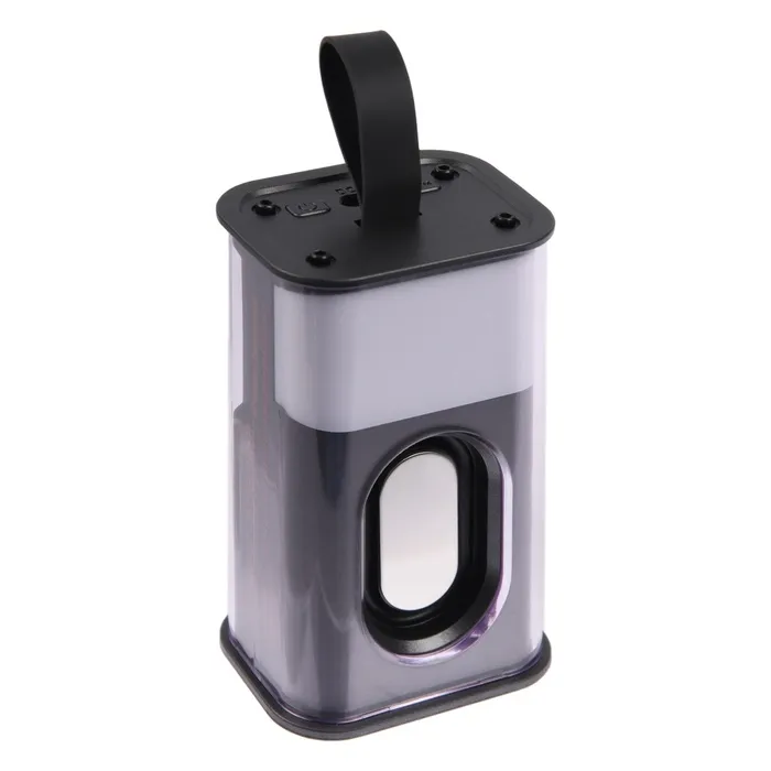 Портативная колонка K08, 5 Вт, прозрачная, подвес, 500 мАч, подсветка, чёрная