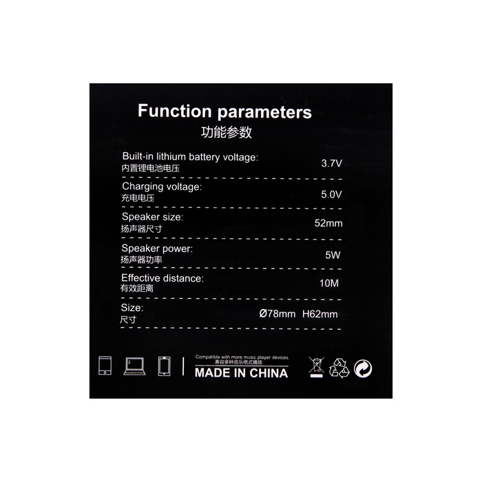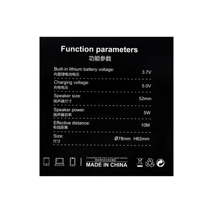 - Яркий звук: 5 Вт мощности и качественная акустика для отличного звучания на малых расстояниях.