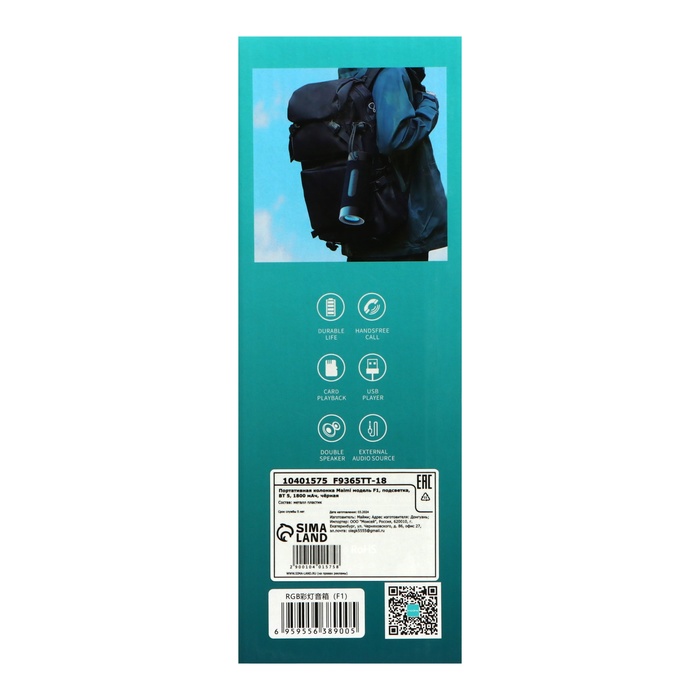 Портативная колонка Maimi F1, microUSB, подсветка, BT 5, 1800 мАч, чёрная — Характеристики