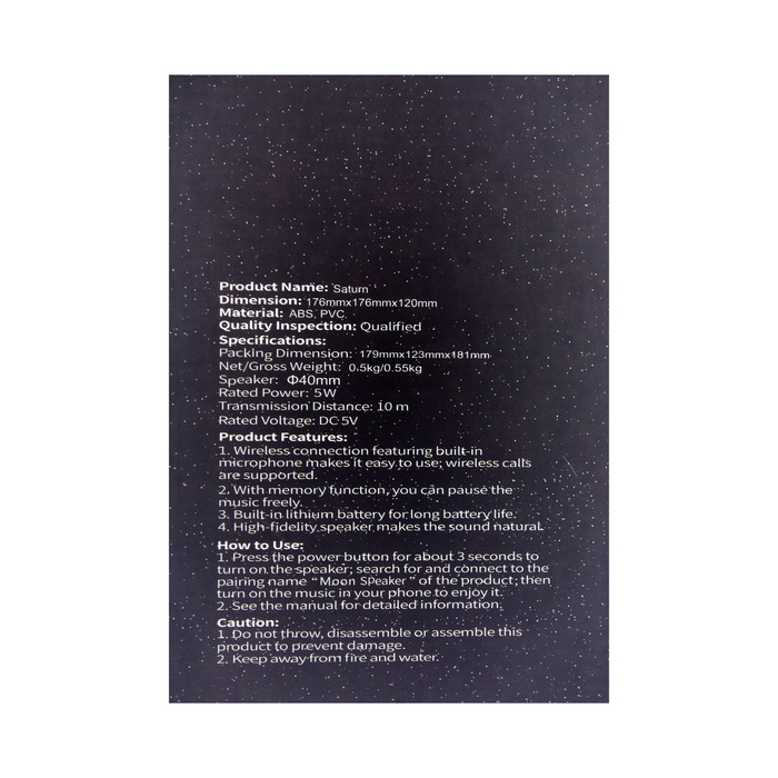 Портативная колонка- ночник EZ01, 5 Вт, 1200 мАч, диаметр 120 мм, 3 режима, сатурн — Характеристики