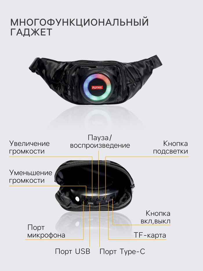 Портативная колонка - сумка LAB-85, 10 Вт, 2500 мАч, с подсветкой, поддержка карты памяти, чёрная — Характеристики