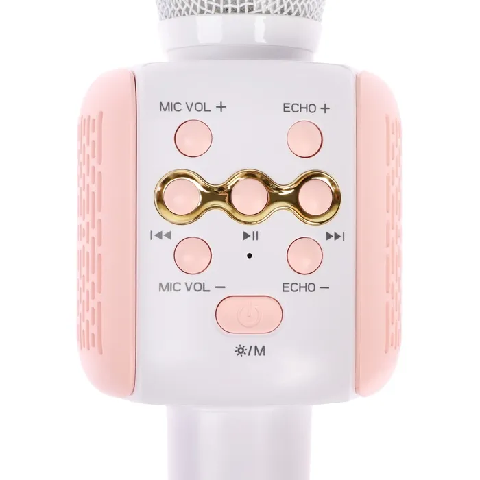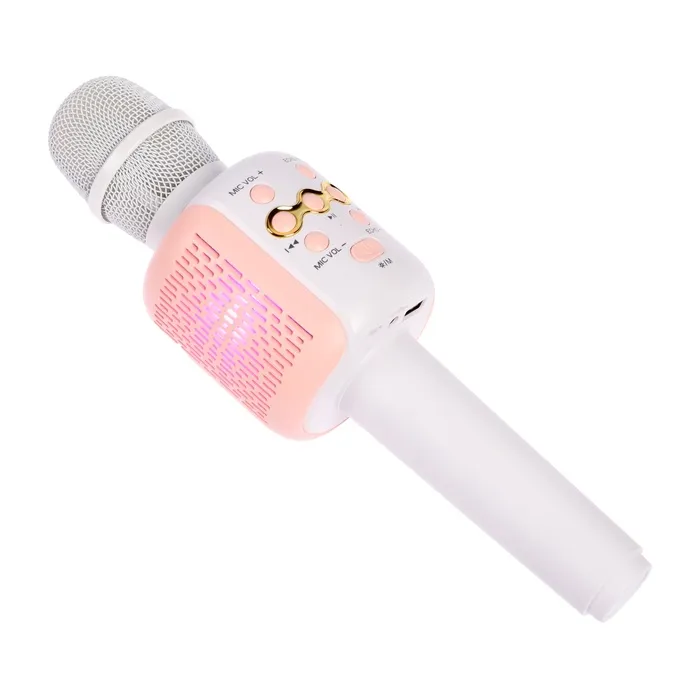 Подарите себе незабываемые моменты веселья с этим стильным портативным микрофоном. Восхищая ярким розово-белым дизайном и эффектной LED-подсветкой, он станет не только вашим любимым аксессуаром для караоке, но и отличным подарком для друзей и близких. Компактный размер и беспроводное подключение позволяют наслаждаться пением где угодно, не ограничиваясь проводами.