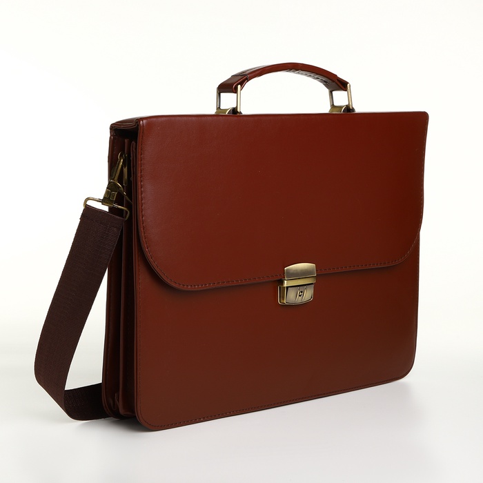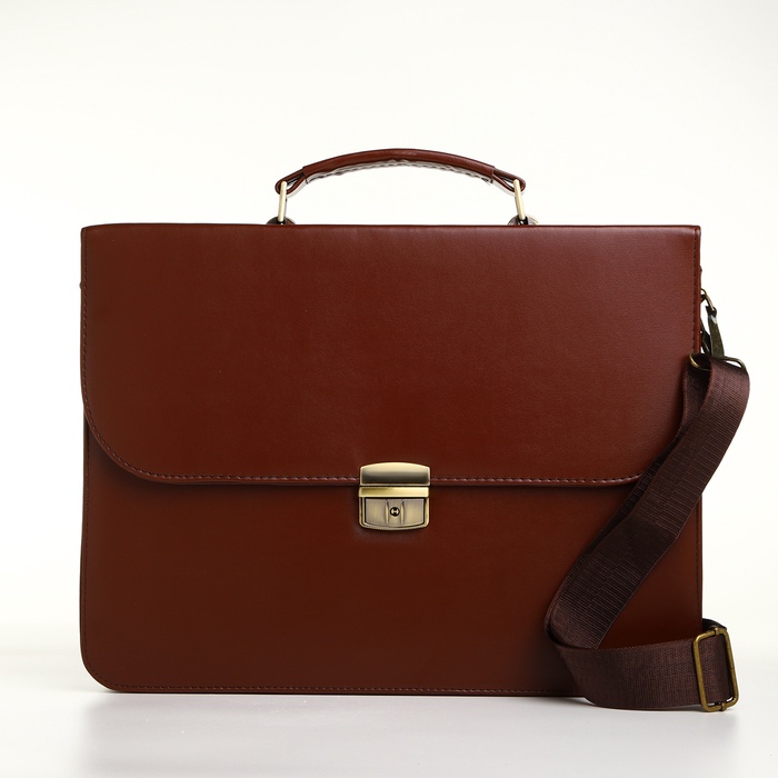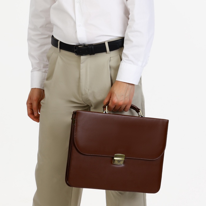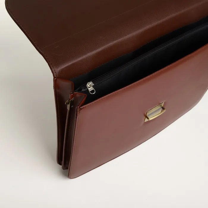 Портфель деловой мужской на клапане, 38×4×28 см, коричневая — Характеристики