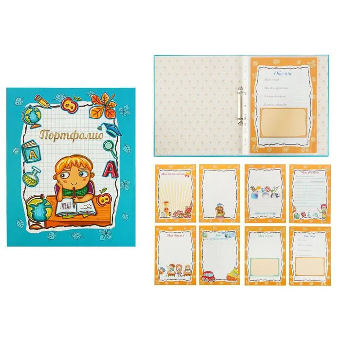 Портфолио папка на кольцах А4, 10 листов, ламинированный картон, голубая — Характеристики