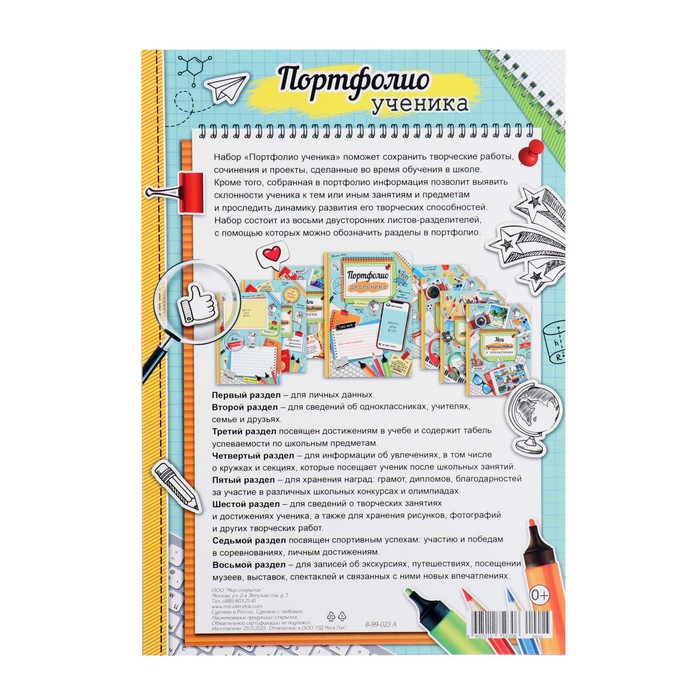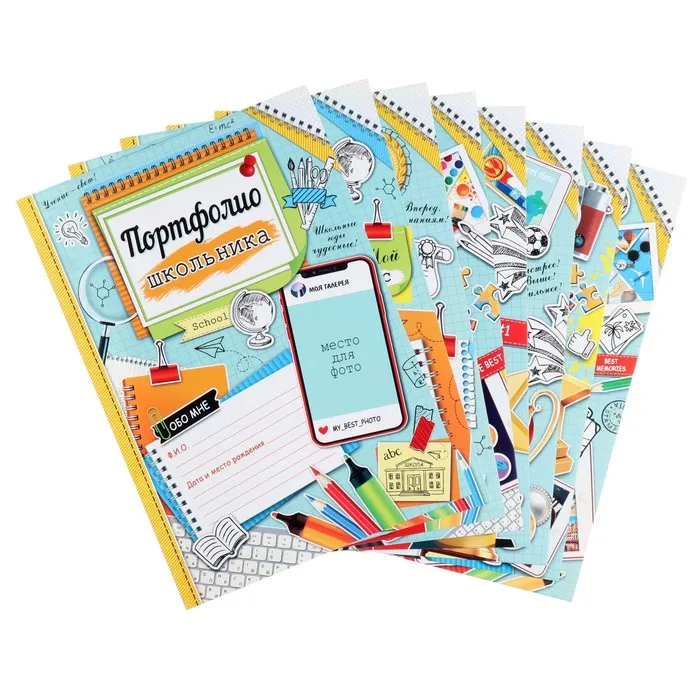 Листы разделители для школьного портфолио «Портфолио школьника», 8 листов, А4