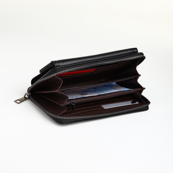 Портмоне-клатч мужской на молнии TEXTURA, чёрное — Характеристики