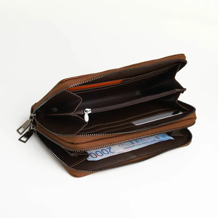 Портмоне-клатч мужской на молнии TEXTURA, цвет коричневый — Характеристики