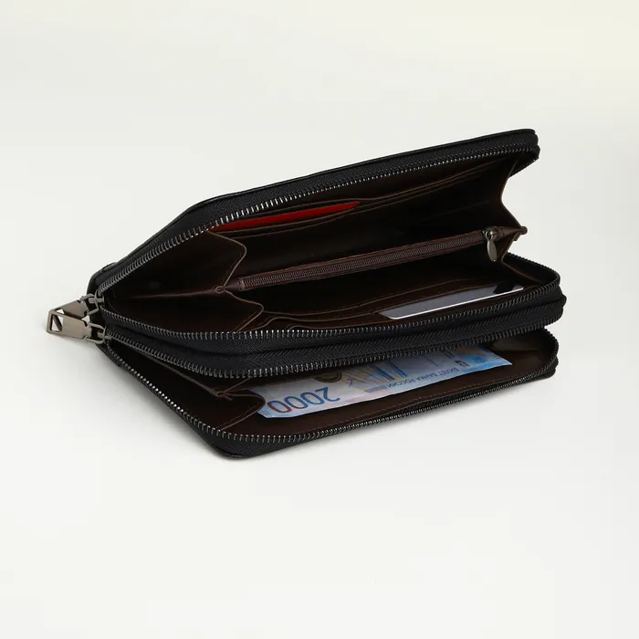 Портмоне-клатч мужской TEXTURA, с ручкой, чёрное — Характеристики
