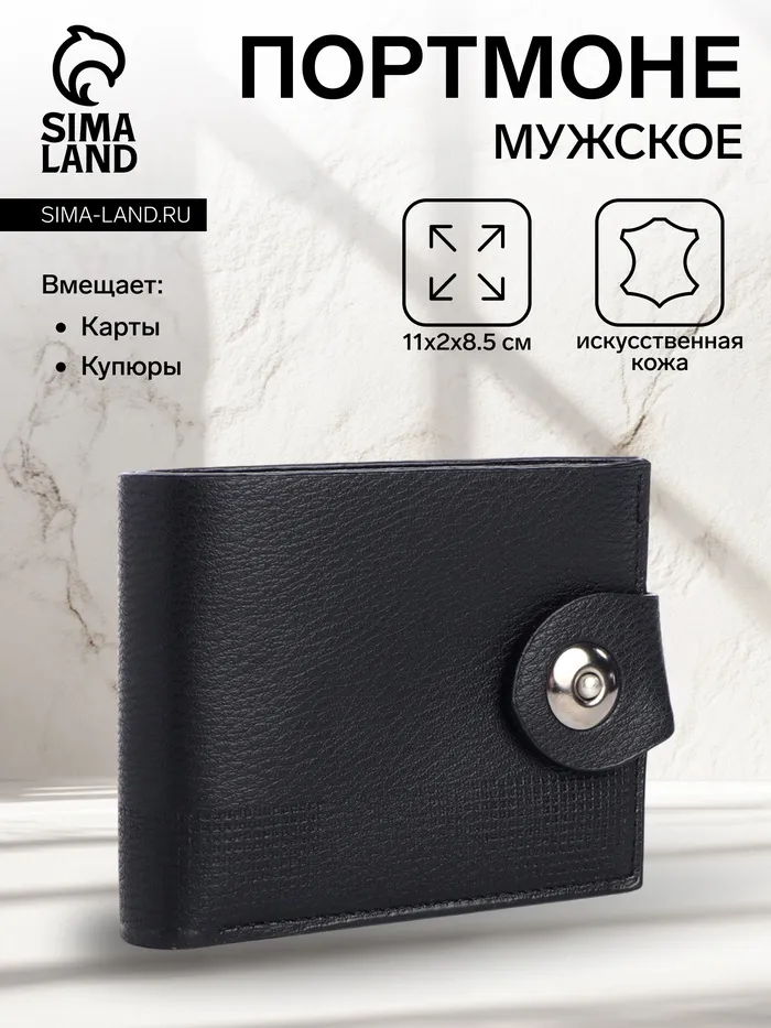 Портмоне мужское «Бадр», на магните, отдел для карт, монет, чёрное — Характеристики