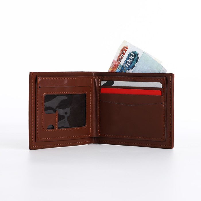 Портмоне мужское без застежки, отдел для купюр, для карт, цвет светло-коричневый — Характеристики