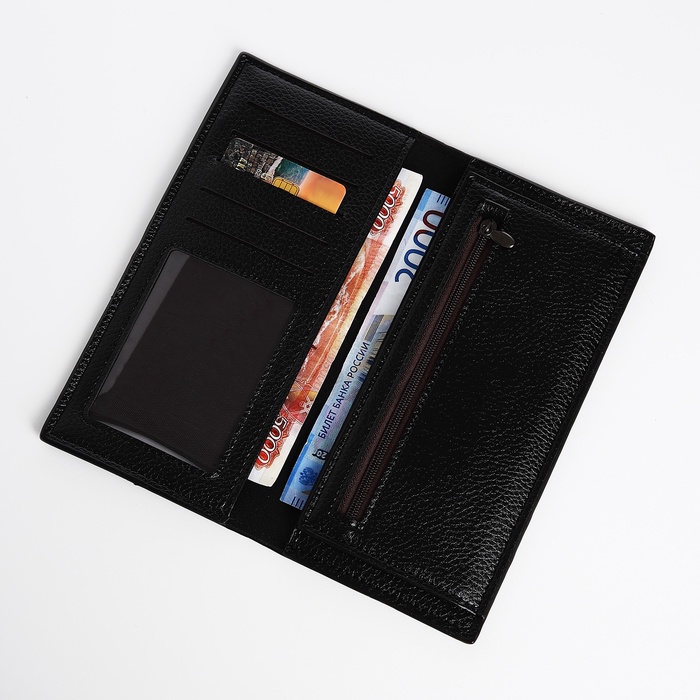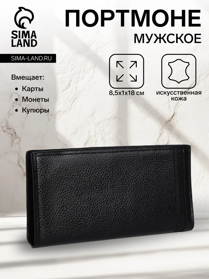 Портмоне мужское, без застежки, три отделения, чёрное — Характеристики