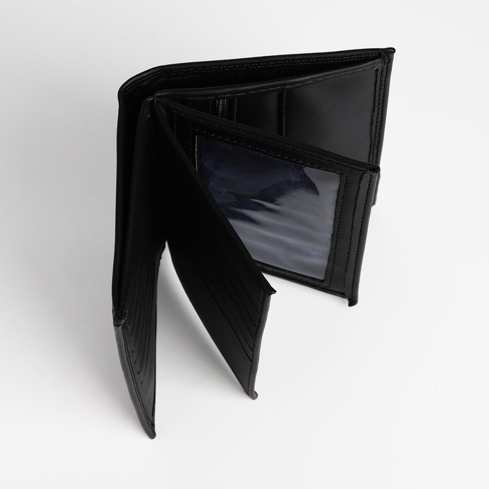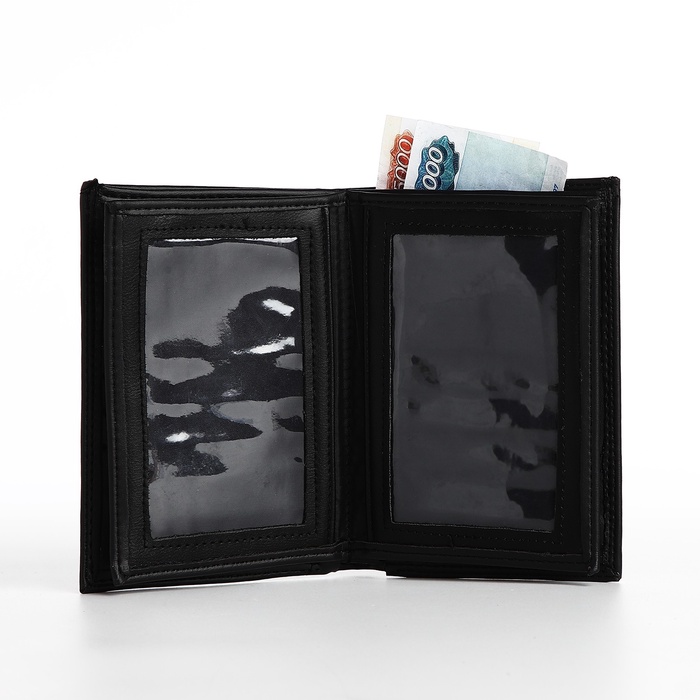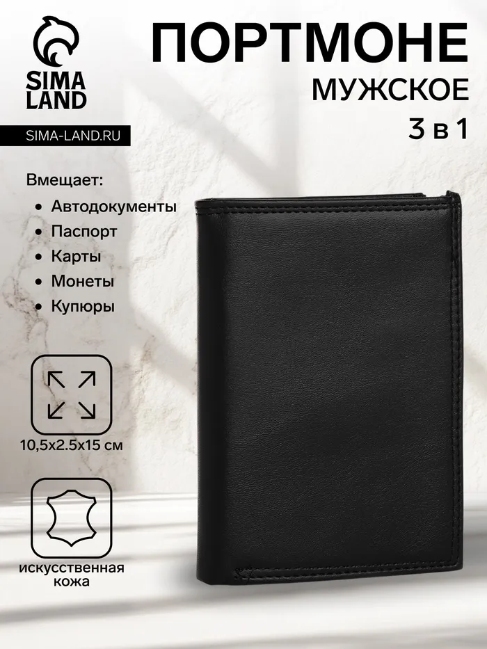 Портмоне мужское без застёжки, 3 в 1, отдел автодокументов, паспорта, карт, купюр, чёрное — Характеристики