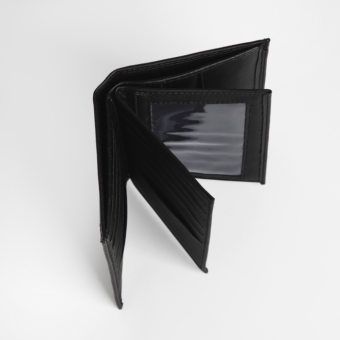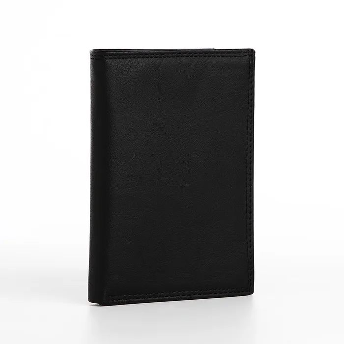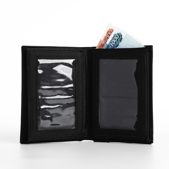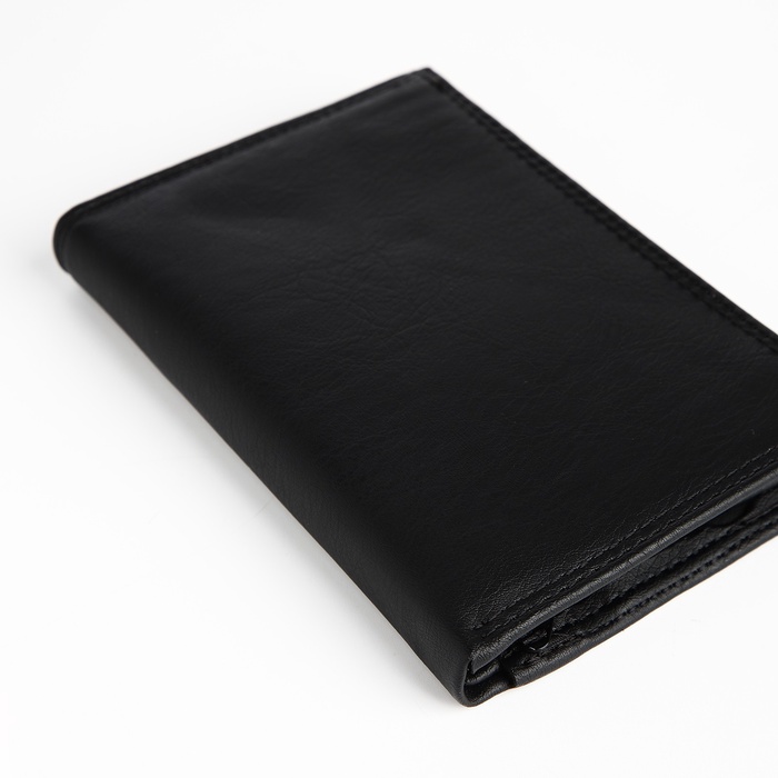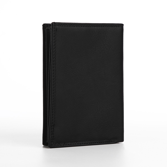 Портмоне мужское без застёжки, 3 в 1, отдел автодокументов, паспорта, карт, купюр, цвет чёрный — Характеристики