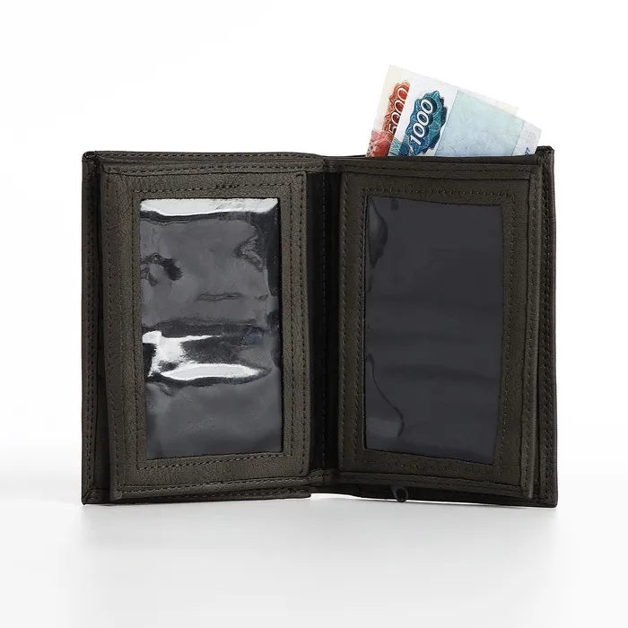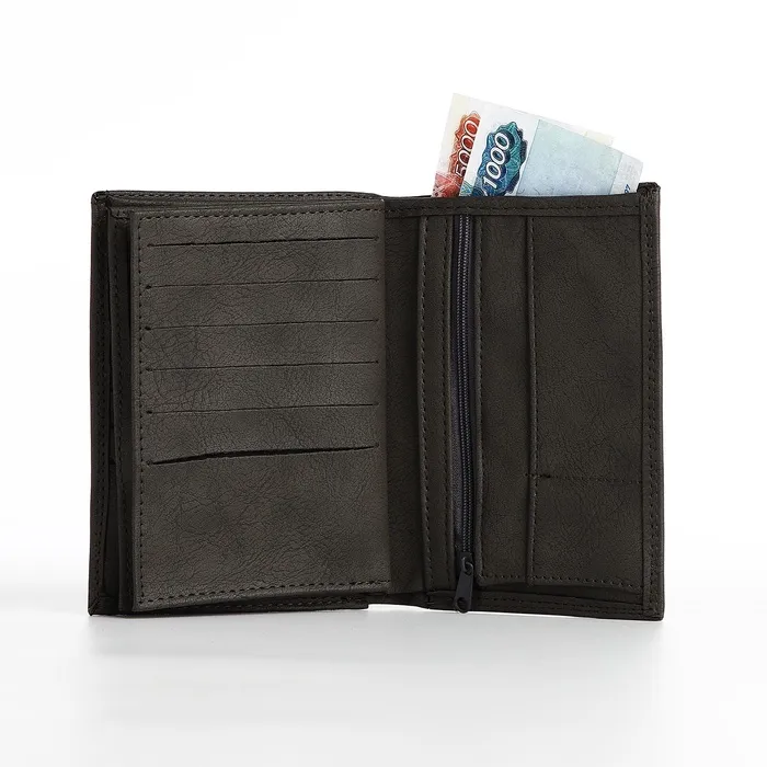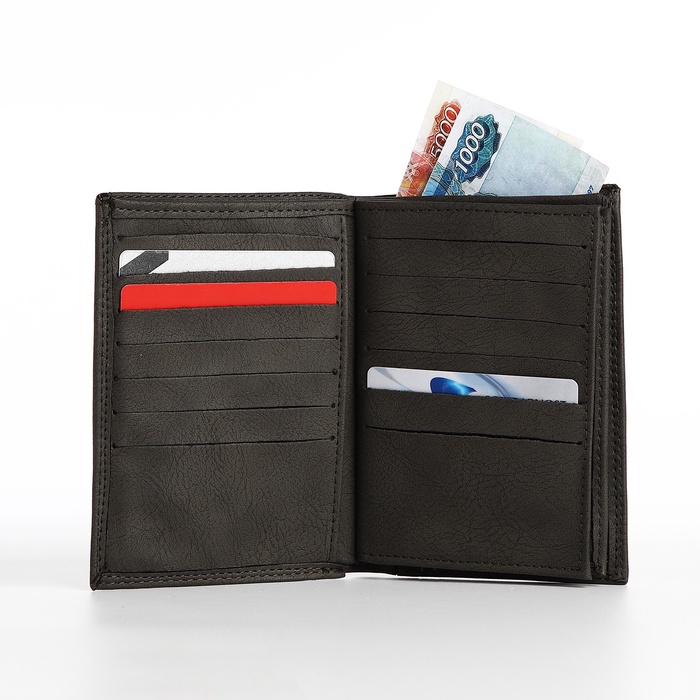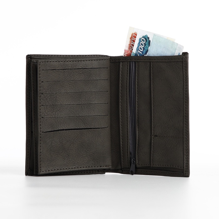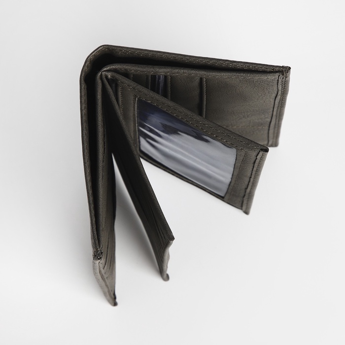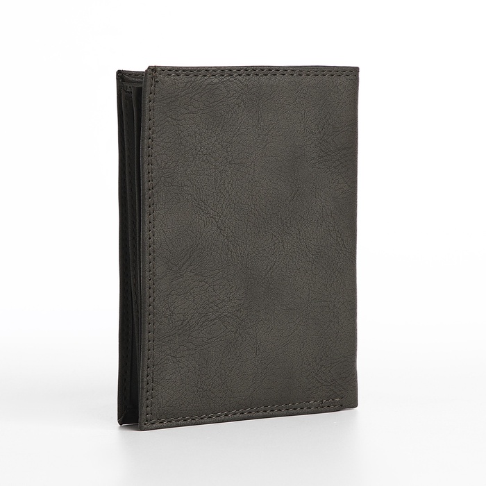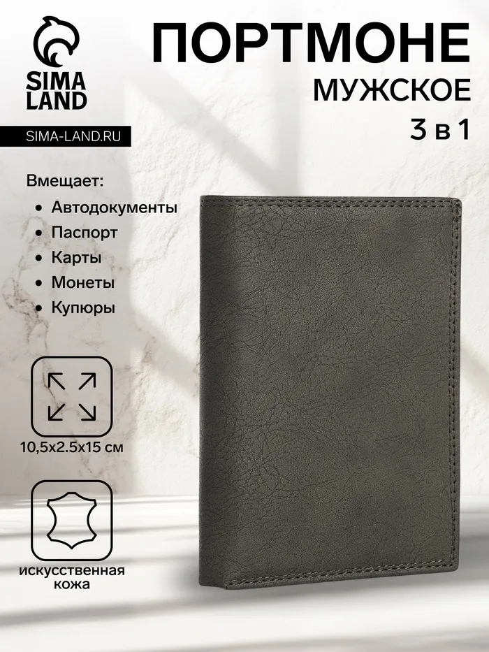 Портмоне мужское без застёжки, 3 в 1, отдел автодокументов, паспорта, карт, купюр, цвет серый — Характеристики