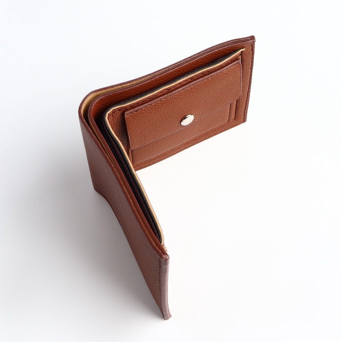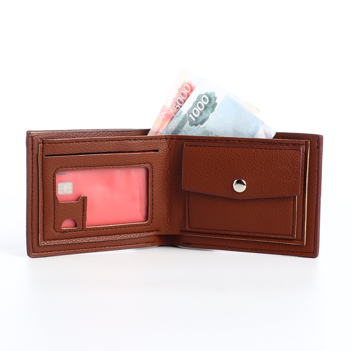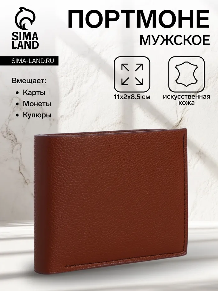 Портмоне мужское, без застёжки, отдел для карт, монет, коричневое — Характеристики