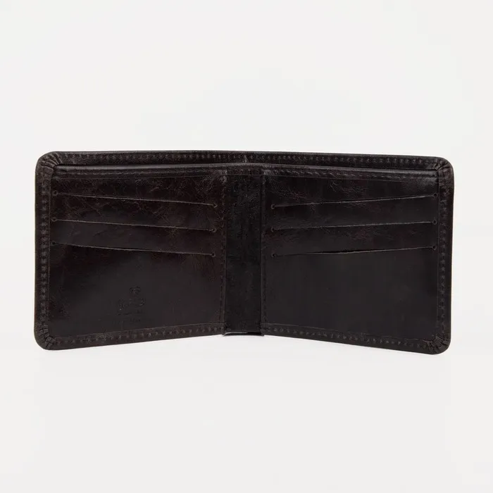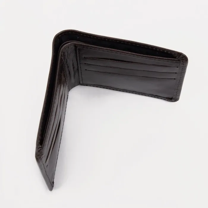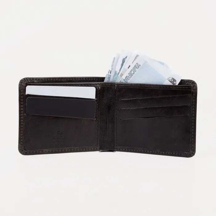 Этот мужской бумажник из натуральной кожи сочетает лаконичный дизайн с практичной организацией пространства. Его компактный формат и отсутствие застёжки делают его удобным для ежедневного ношения банкнот и карт — он легко помещается в карман брюк или куртки.