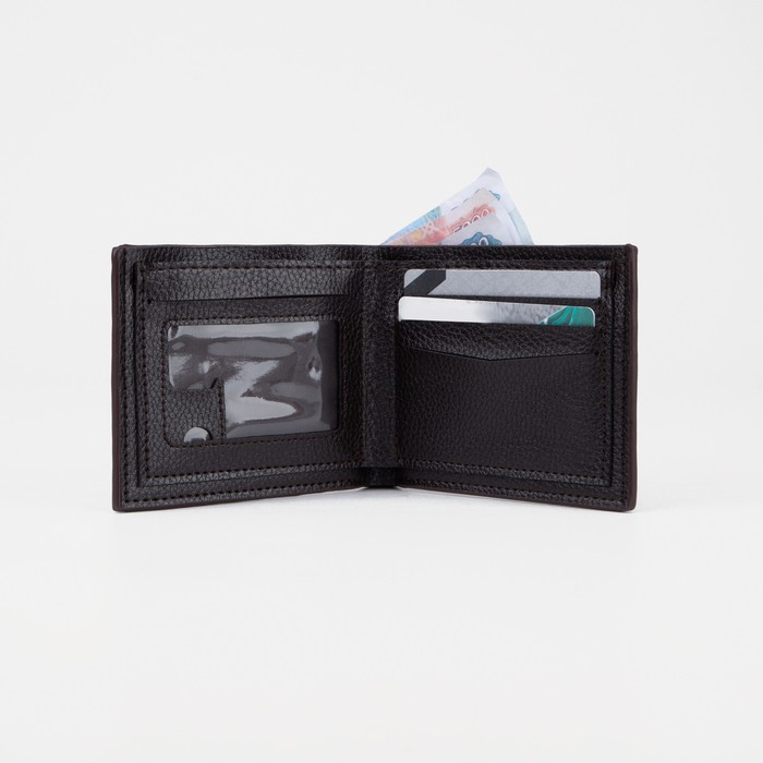Портмоне мужское без застёжки, отдел для купюр, монет и карт, цвет коричневый — Характеристики