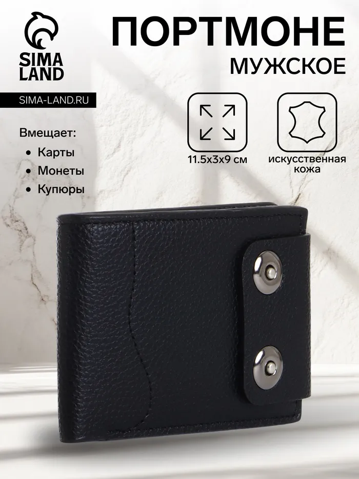 Портмоне мужское «Идрис», на магнитах, чёрное — Характеристики