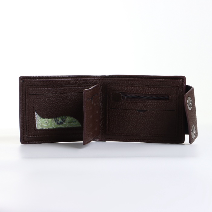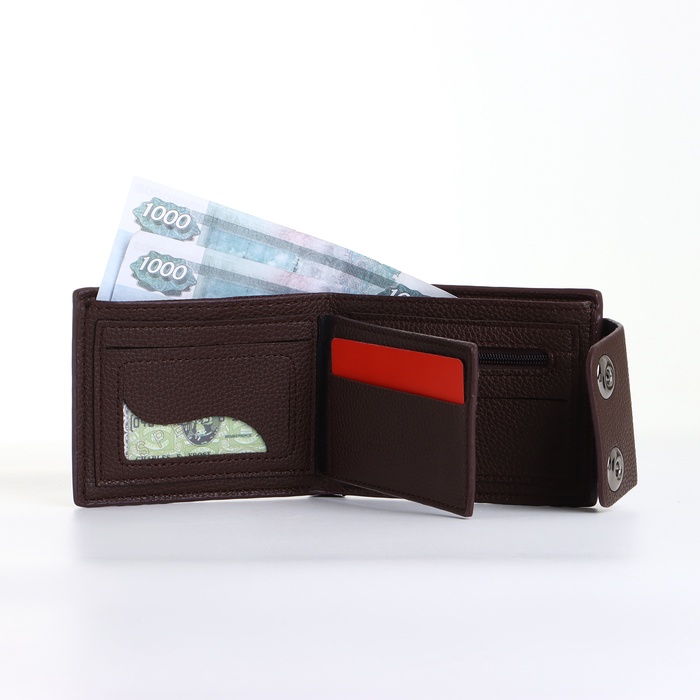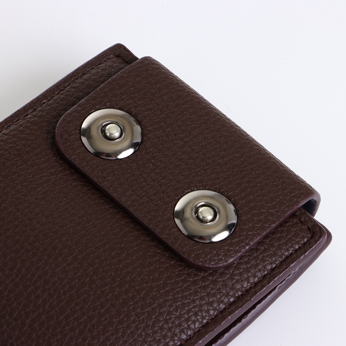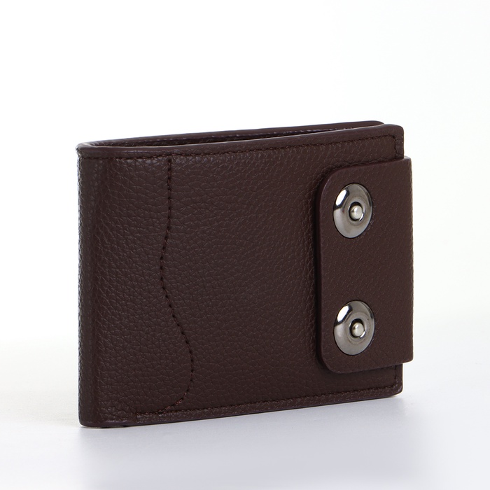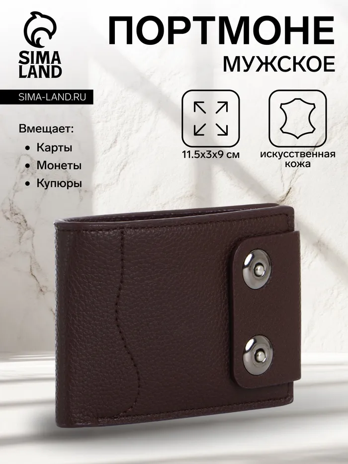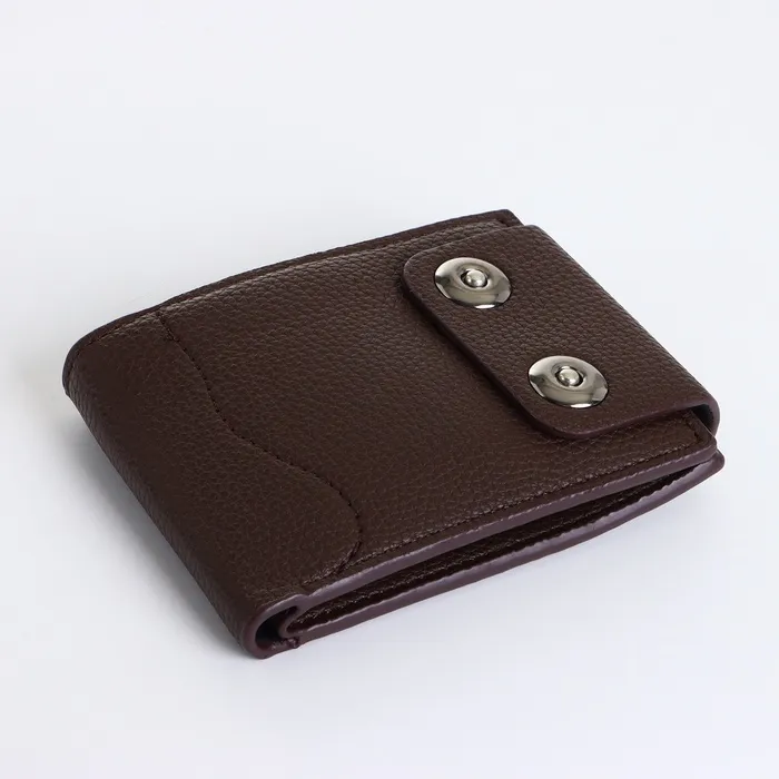 Этот коричневый портмоне создаёт сдержанное пространство для организации финансовых инструментов. Его классический цвет и магнитная застёжка подходят мужчинам, ценящим традиционный стиль в повседневных аксессуарах.