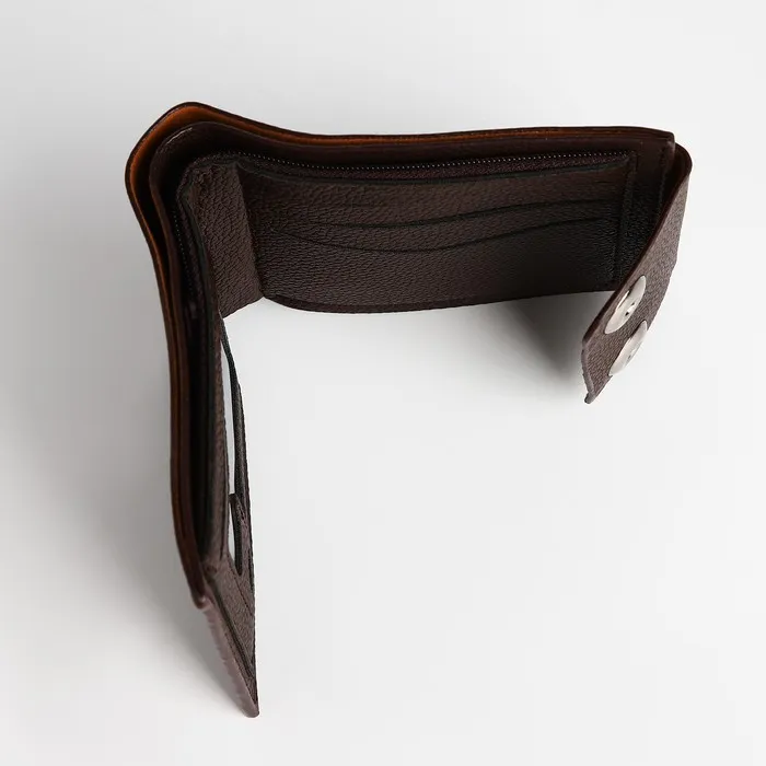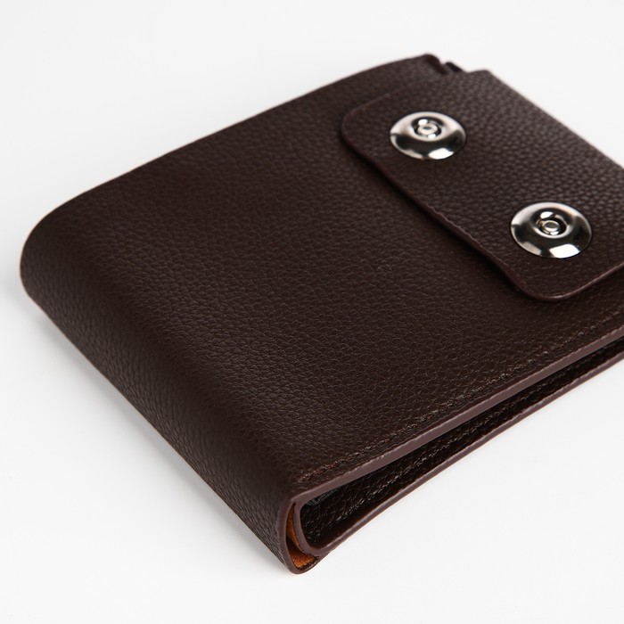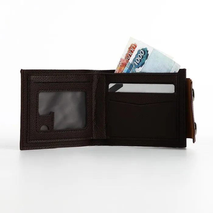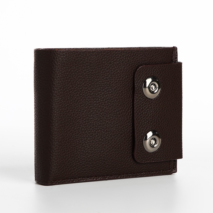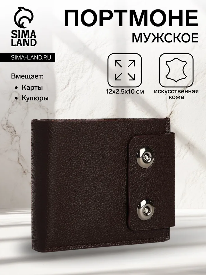 Мужской магнитный кошелёк среднего размера организует наличные, карты и мелочь в компактном формате. Коричневый цвет искусственной кожи добавляет солидности образу, сохраняя практичность для повседневного ношения. Магнитная застёжка обеспечивает защиту содержимого без лишних усилий.