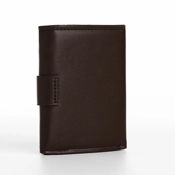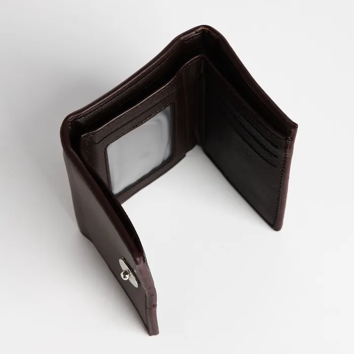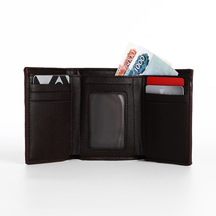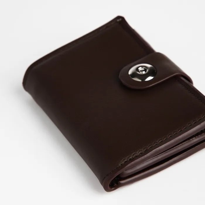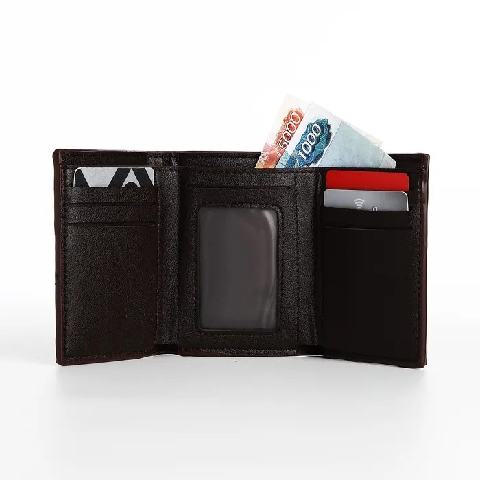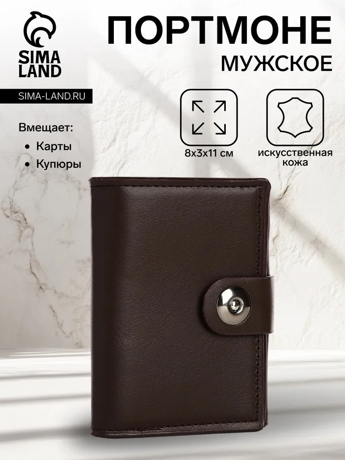 Мужской магнитный кошелёк среднего размера организует наличные, карты и мелочь в компактном формате. Коричневый цвет искусственной кожи добавляет солидности образу, сохраняя практичность для повседневного ношения. Магнитная застёжка обеспечивает защиту содержимого без лишних усилий.
