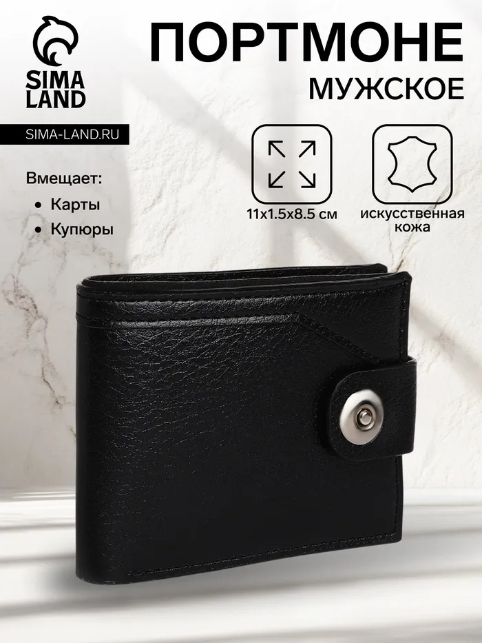 Портмоне мужское «Исар», на магните, три отделения, чёрное — Характеристики