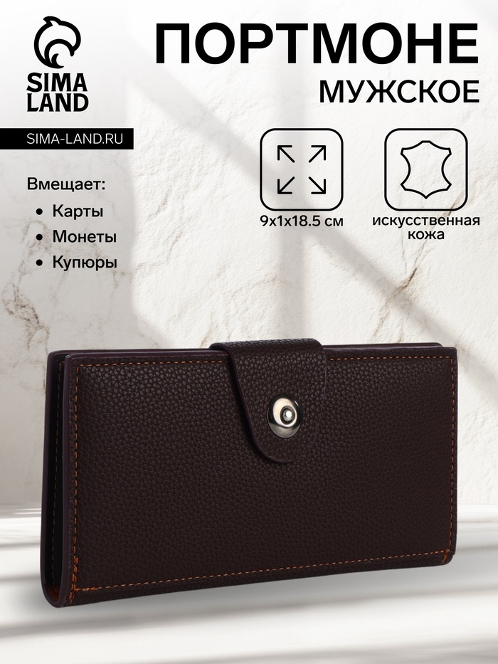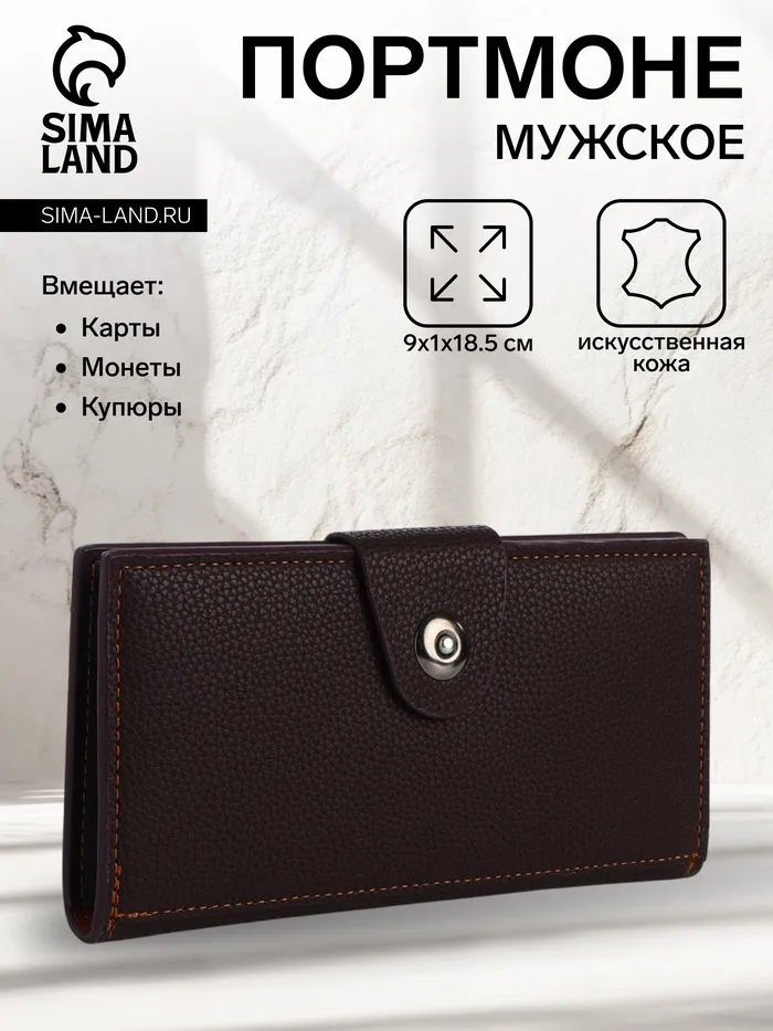Мужской магнитный кошелёк большого размера создан для систематизации карт и монет. Коричневый цвет искусственной кожи подчёркивает деловой стиль, сохраняя практичность для ежедневного использования. Магнитная застёжка обеспечивает надёжную защиту содержимого.