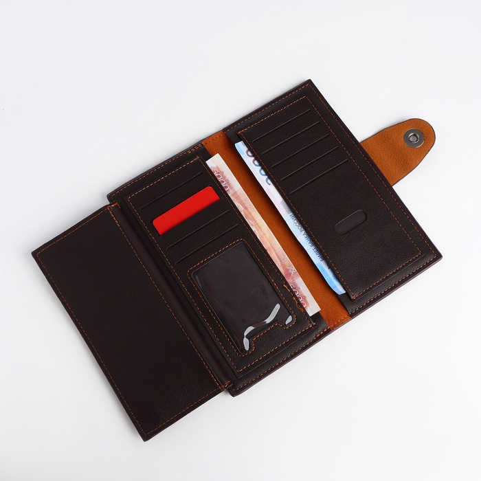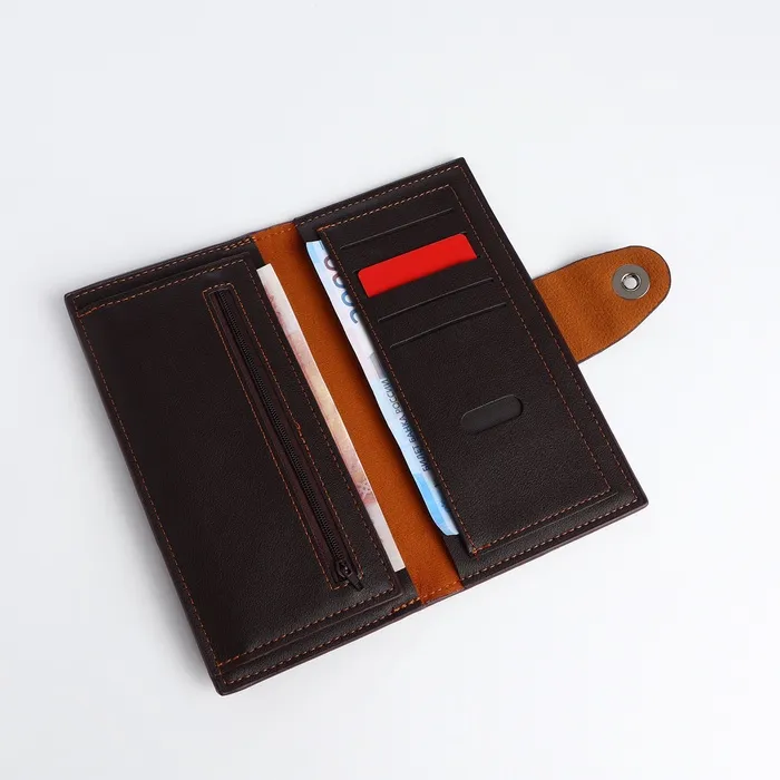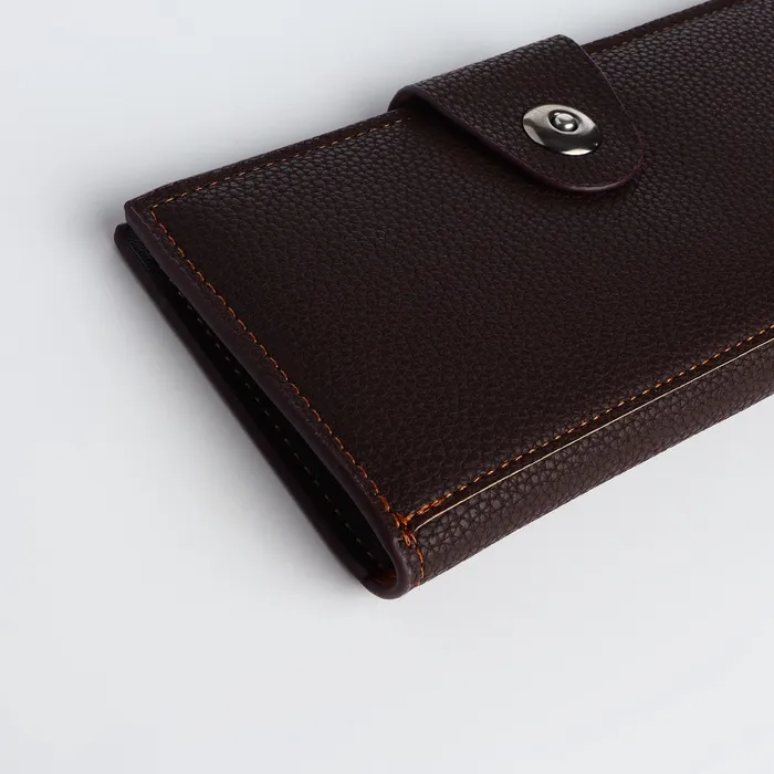 Искусственная кожа устойчива к повседневному износу, сохраняя аккуратный внешний вид. Магнитная застёжка срабатывает точно, обеспечивая лёгкий доступ к картам и монетам. Большой размер вмещает значительное количество карт без деформации. Это решение для тех, кто работает преимущественно с картами и ценит порядок в финансовых инструментах. Все необходимые платёжные средства организованы в строгой системе, готовые к моментальному использованию.