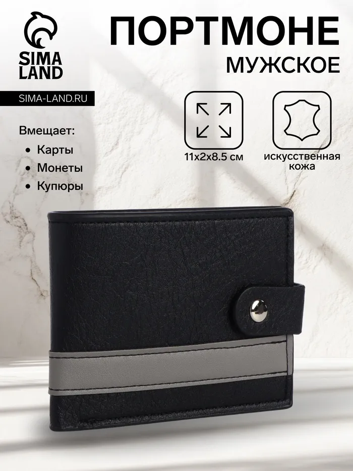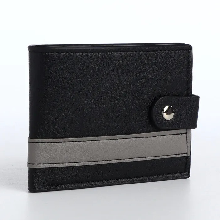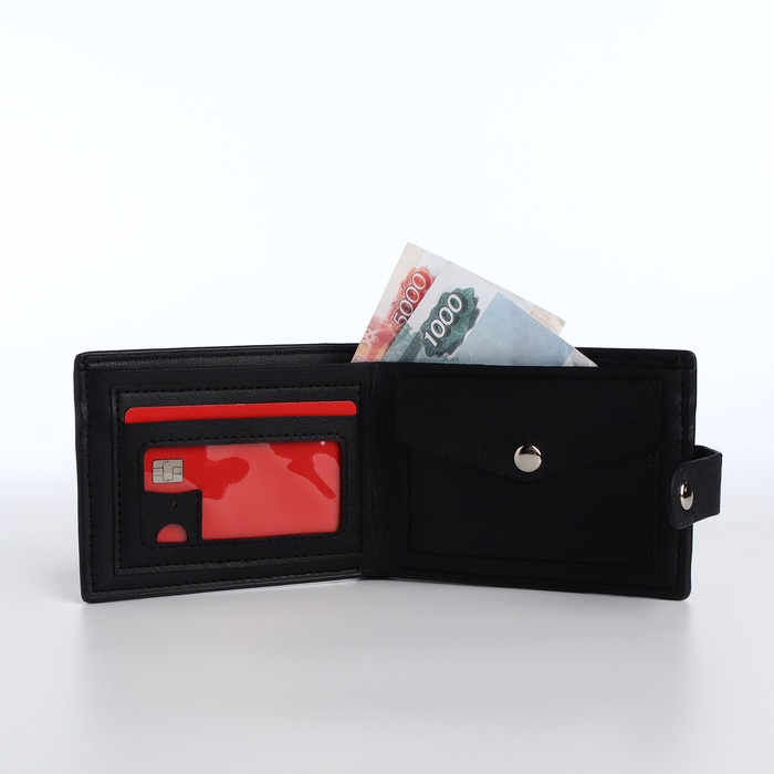 Портмоне мужское «Кхата», на кнопке, отдел для карт, монет, чёрное — Характеристики