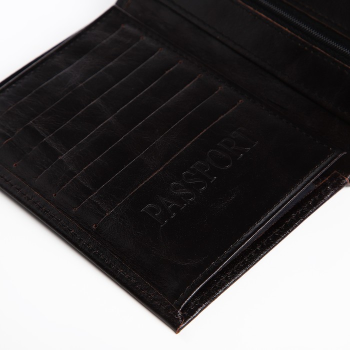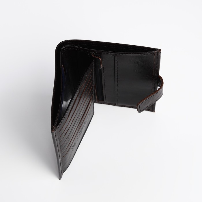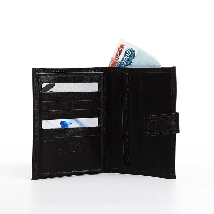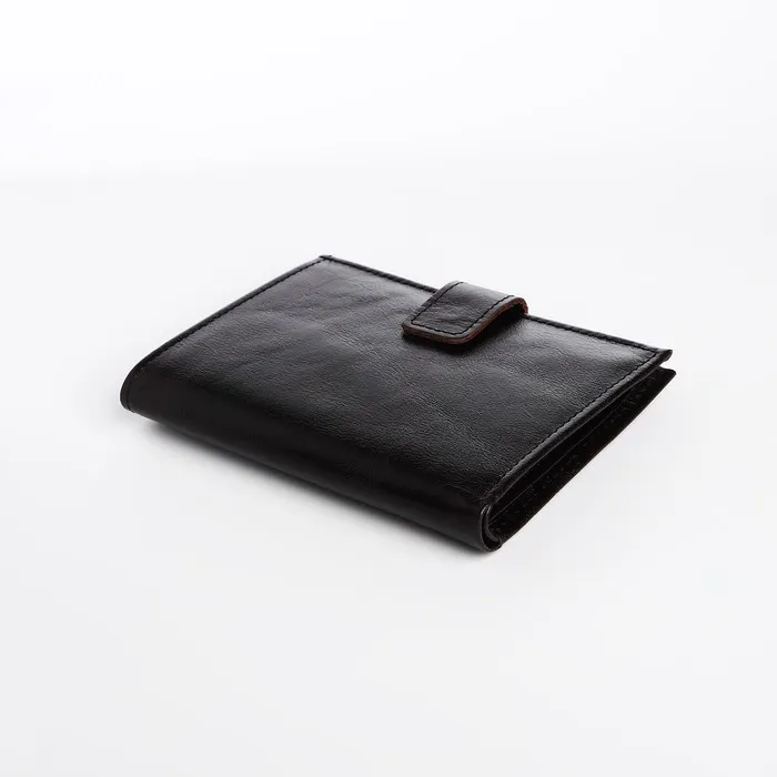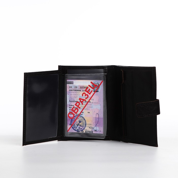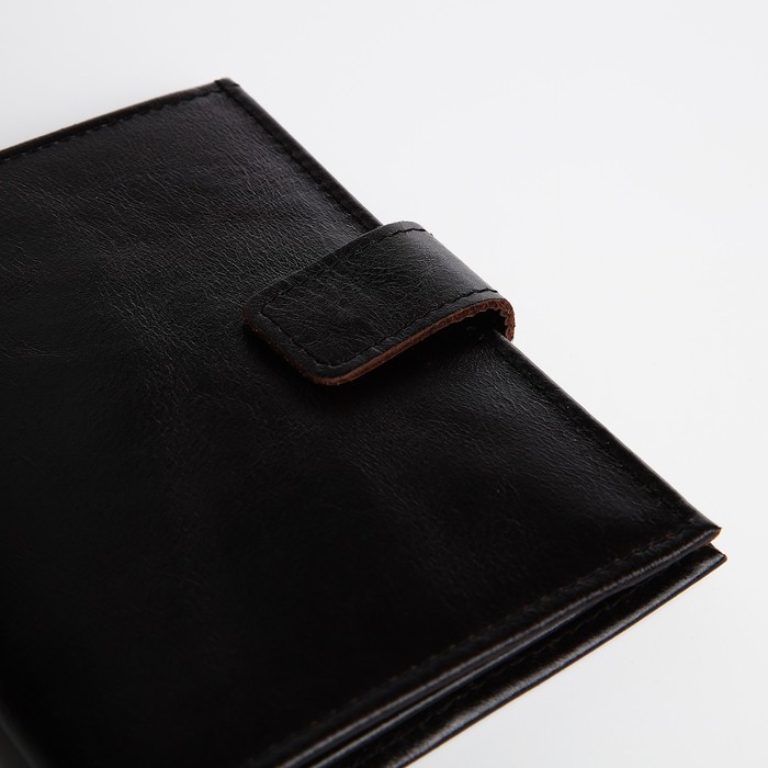 Портмоне мужское на кнопке, 3 в 1, для автодокументов, для паспорта, для купюр, цвет чёрный — Характеристики