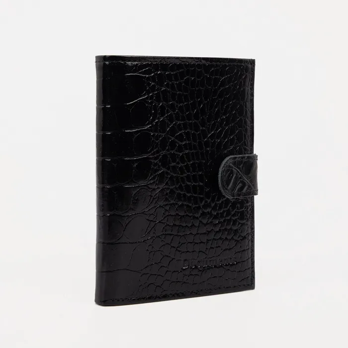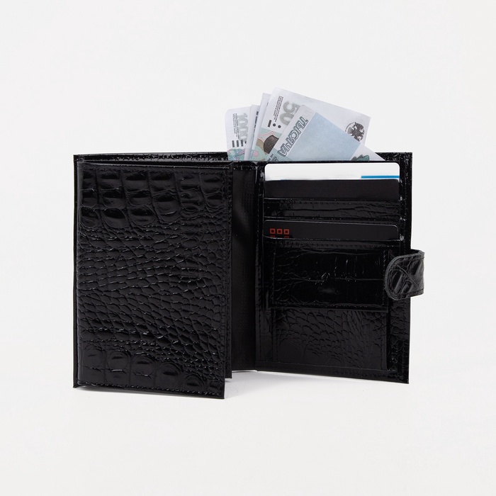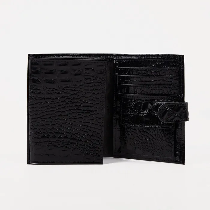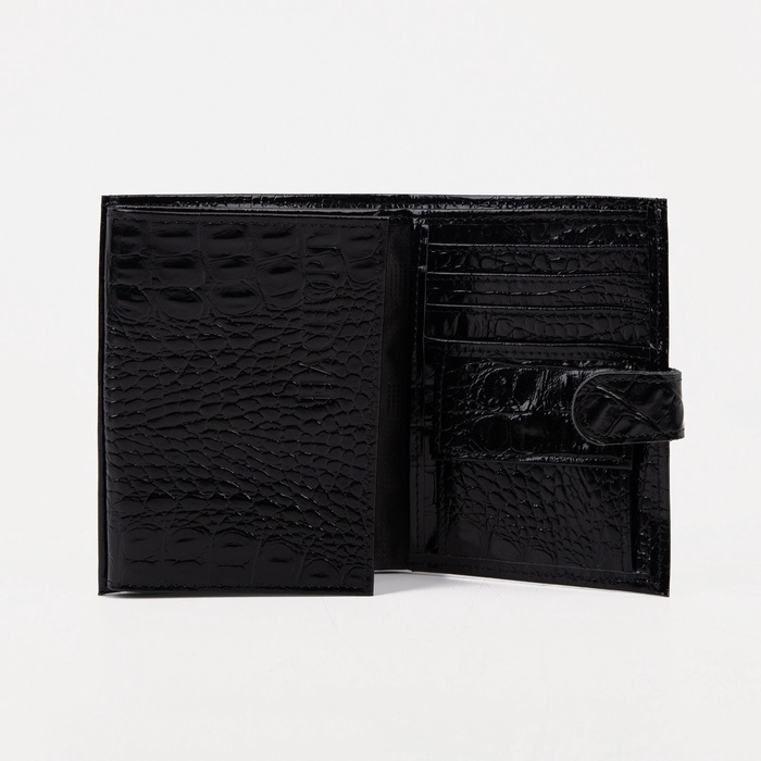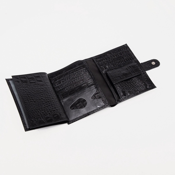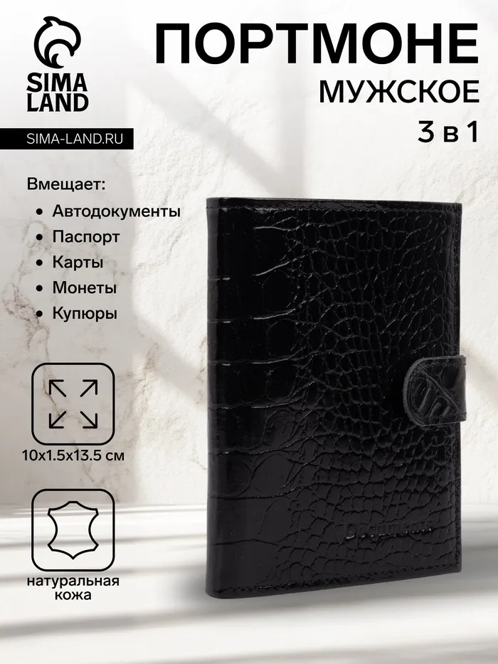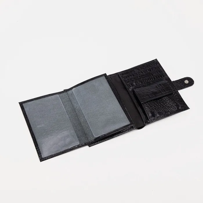 Портмоне мужское на кнопке для автодокументов и паспорта, цвет чёрный — Характеристики
