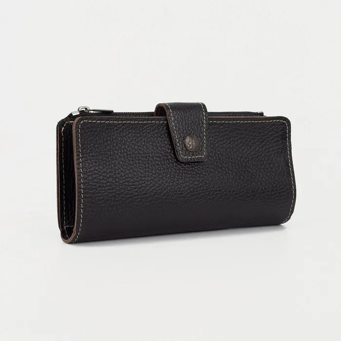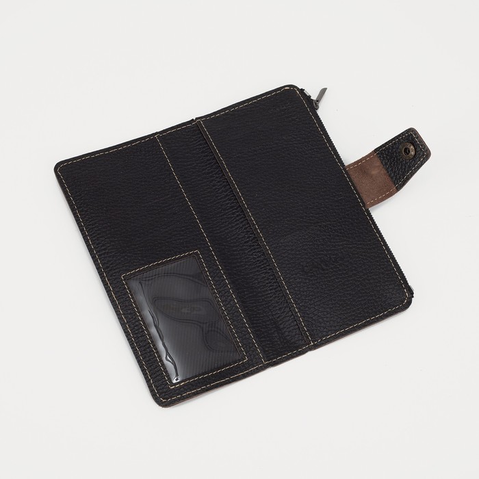 Портмоне мужское на кнопке, для купюр, для карт, для монет, цвет чёрный — Характеристики