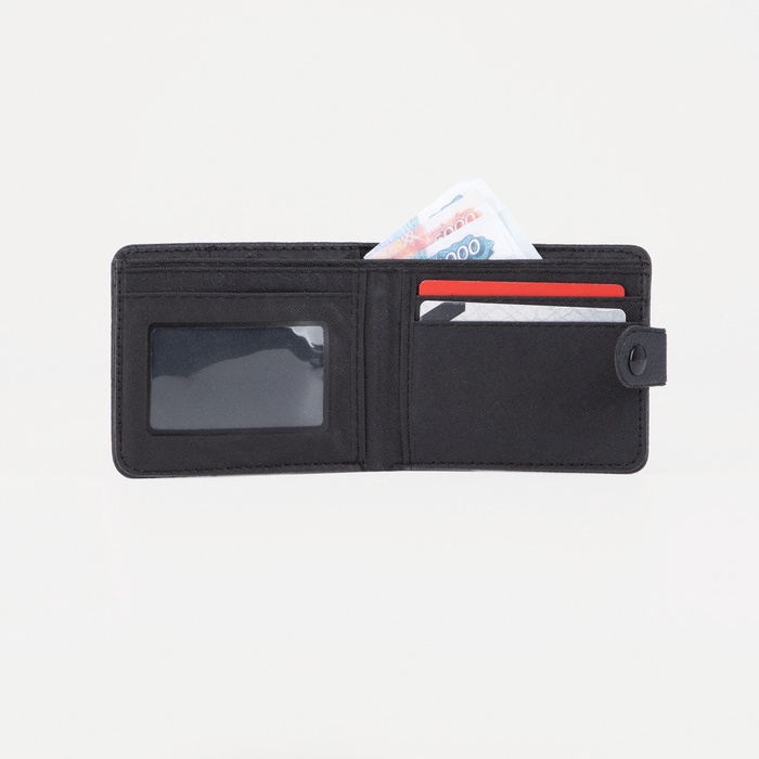 Портмоне мужское, на кнопке, два отделения, чёрное — Характеристики