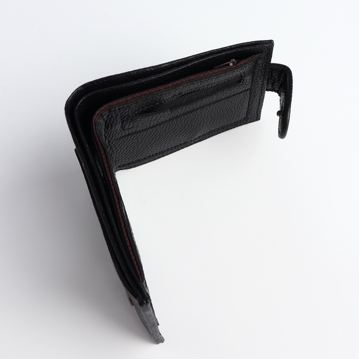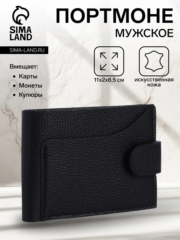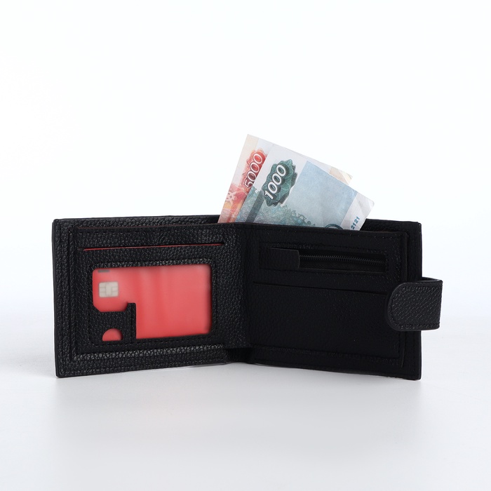 Портмоне мужское на кнопке, отдел для карт, монет, цвет чёрный — Характеристики