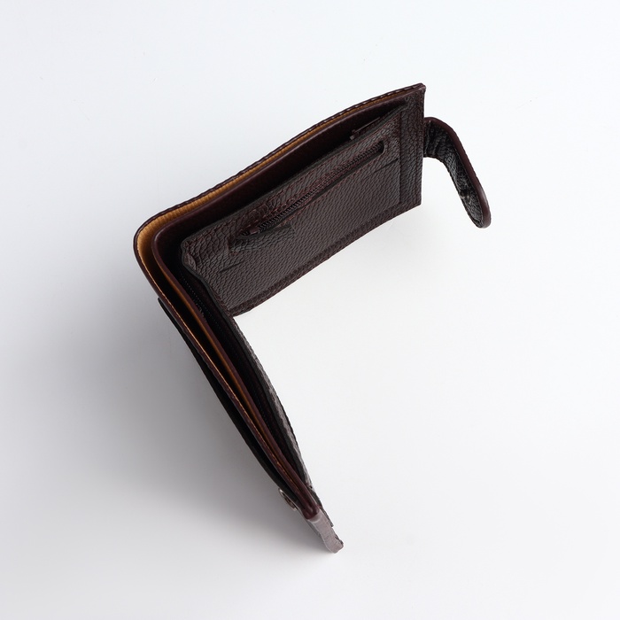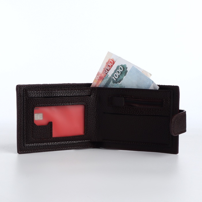 Портмоне мужское на кнопке, отдел для карт, монет, цвет коричневый — Характеристики