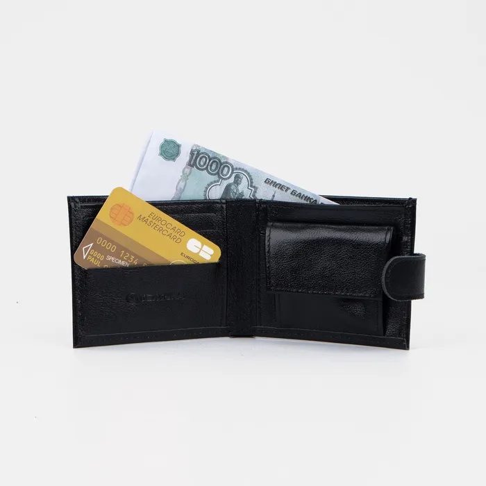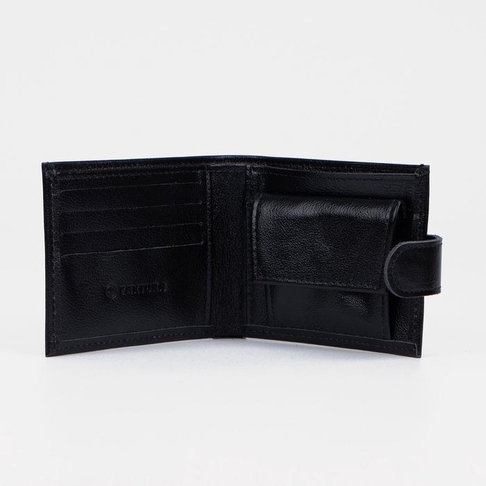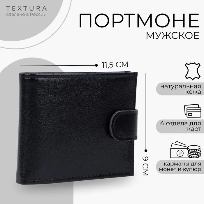 Портмоне мужское на кнопке TEXTURA, отдел для купюр, для карт, для монет, цвет чёрный — Характеристики