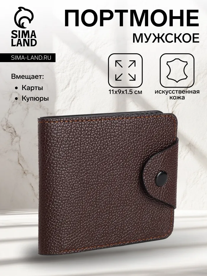 Портмоне мужское на кнопке, цвет коричневый — Характеристики