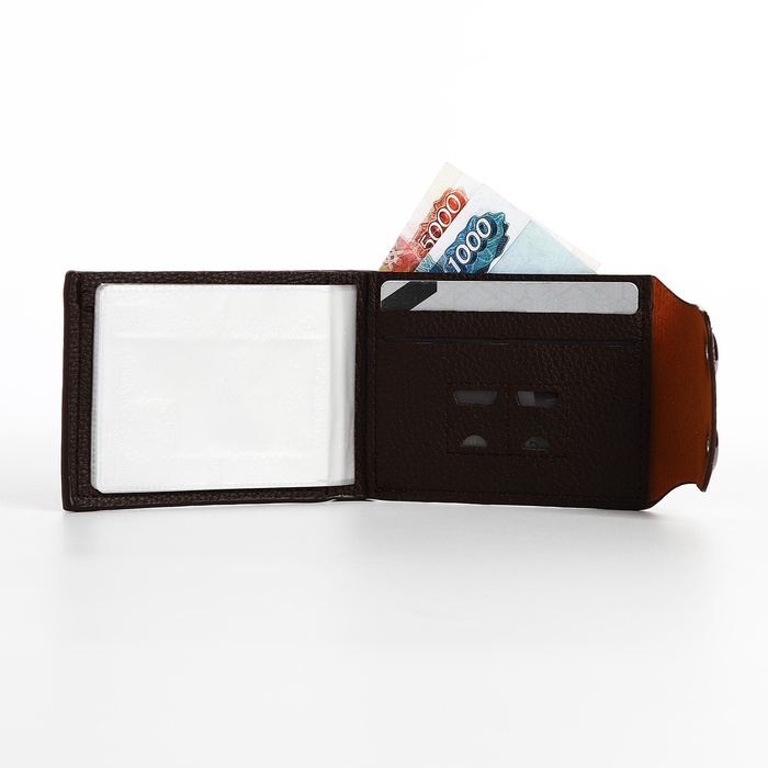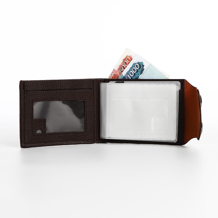 Портмоне мужское на магнитах, отдел для купюр, карт, монет, цвет коричневый — Характеристики