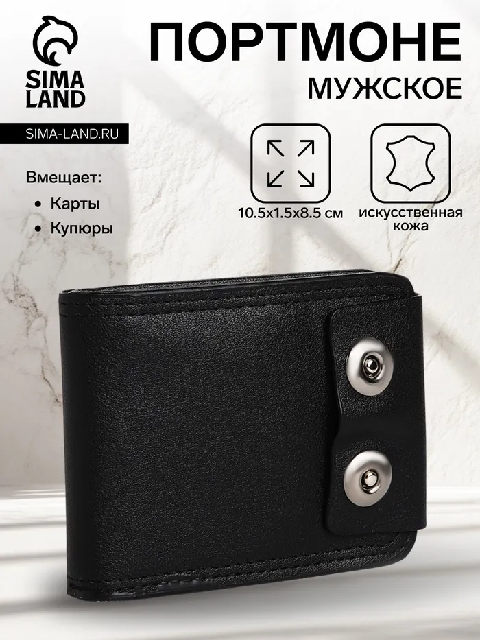 Портмоне мужское на магнитах, цвет чёрный — Характеристики